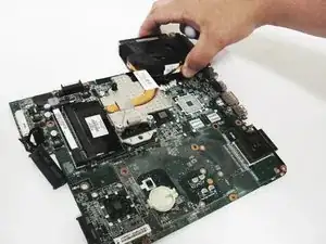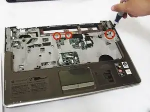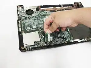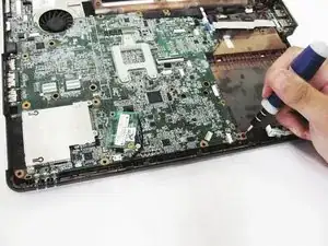 Извлеките материнскую плату из корпуса ноутбука, следя за тем, чтобы модемная плата не выпала.