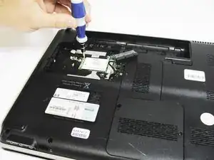 Найдите винт Phillips длиной 2,5 мм в углу платы WLAN и отвинтите его с помощью отвёртки Phillips #000.