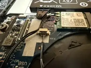 С помощью пинцета или лопатки вытащите кабель вентилятора