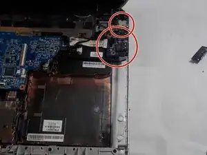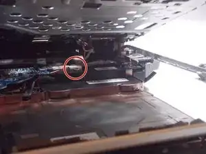 Извлеките дисковод и удалите отмеченный кружком винт.