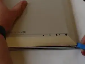 Во время работы с инструментом вставьте шпатель в каждый угол компьютера (будьте осторожны и делайте это медленно).