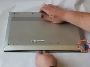 Поставьте ноутбук лицом вниз.