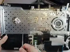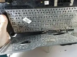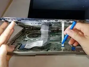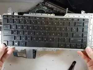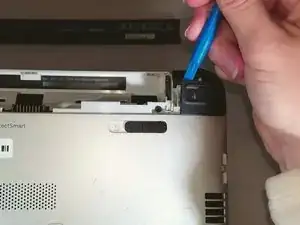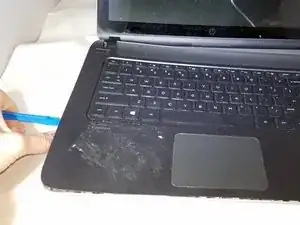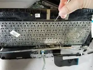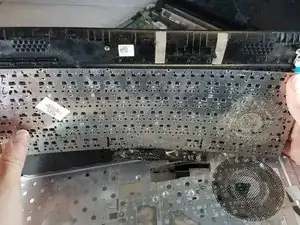 Используя лопатку или пластиковый инструмент для вскрытия, подденьте клавиатуру по боковым кромкам, там, где она соединена с корпусом ноутбука