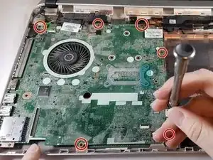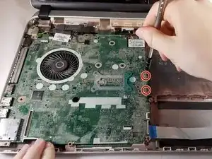 Открутите два винта 5,66 мм с материнской платы с помощью крестообразной отвёртки J0