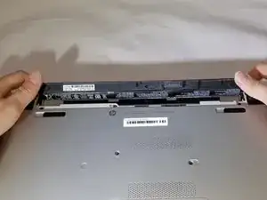 Надавите внутрь, к центру ноутбука (может потребоваться значительное усилие). Батарея освободится, когда кнопки будут полностью нажаты