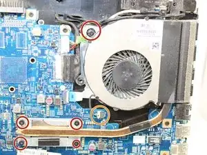 Удалите пять винтов, крепящих вентилятор к материнской плате, с помощью Philips #0.