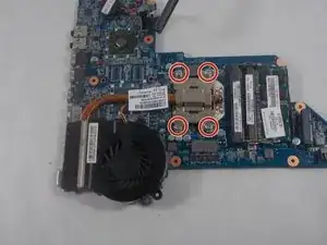 Выверните четыре винта JIS #0 на тыльной стороне материнской платы.