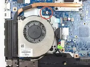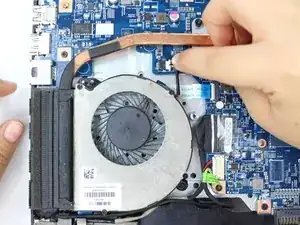 После нанесения термопасты на теплопроводящую пластину установите новый вентилятор на место старого. Чтобы собрать ноутбук, выполните шаги в обратном порядке.