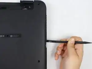 После снятия порта CD-привода с помощью лопатки аккуратно снимите заднюю панель.