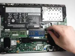 Возьмитесь за разъём аккумулятора и потяните его прямо из гнезда на материнской плате.