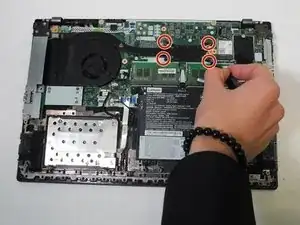 Используйте крестовую отвертку, чтобы удалить следующие винты, крепящие нижнюю крышку: