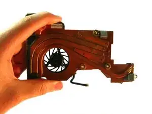 Отделите медный радиатор, потянув его вверх, чтобы отключить разъём от материнской платы.