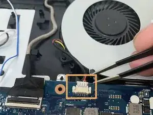 Вытащите белый разъем вентилятора из его порта с помощью пинцета или инструмента для поддевания.