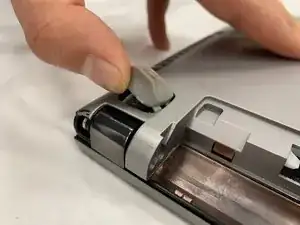 Сдвиньте переключатель батареи с меткой «1» пальцем. Красный цвет указывает, что переключатель разблокирован.