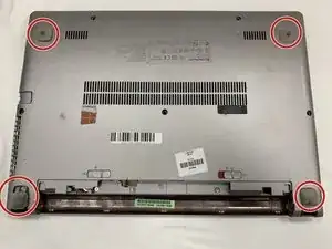 Найдите четыре резиновые заглушки возле каждого угла ноутбука.