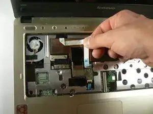 Этот ленточный кабель приклеен к корпусу. Аккуратно потяните его вверх с правой стороны, пока он не отстанет от корпуса.