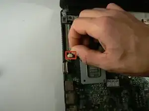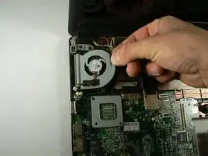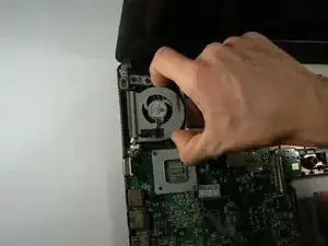 Схватите вентилятор как можно ближе к правой стороне (в сторону центра ноутбука) и поднимите вверх.