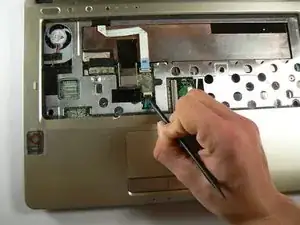 Используйте лопатку, чтобы отщёлкнуть фиксирующую защёлку ZIF-разъёма тачпада.