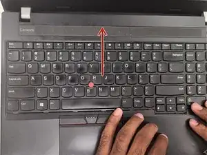 Аккуратно нажмите на клавиатуру, чтобы сдвинуть её вверх и вынуть. Затем аккуратно переверните клавиатуру.