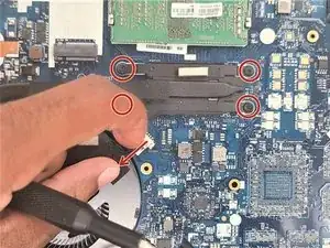 Удалите винты, крепящие материнскую плату.