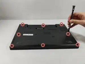 С помощью крестовой отвертки Phillips #1 открутите восемь винтов, фиксирующих заднюю крышку.
