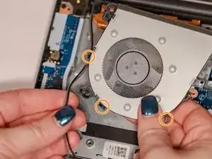 С помощью отвертки Phillips #0 удалите три винта по 6 мм, удерживающих вентилятор.