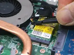 Отключите оба шнура питания вентиляторов от ноутбука с помощью лопатки.