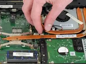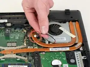Вытяните провод в нижнем левом углу вентилятора из разъема.