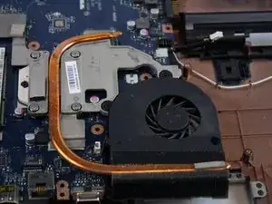 Найдите вентилятор и его медную теплопроводящую трубку, идущую сразу за ним.