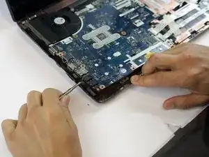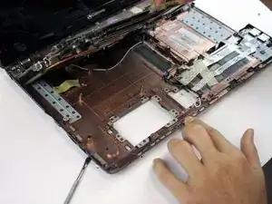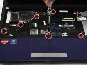 Для замены вентилятора потребуется удалить другие компоненты, такие как материнская плата, клавиатура и крышка, окружающая клавиатуру, чтобы получить доступ к вентилятору.