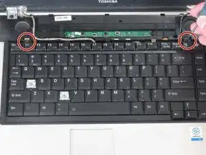 Удалите два винта Phillips #1 длиной 5 мм, которые фиксируют клавиатуру.