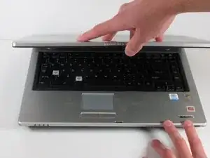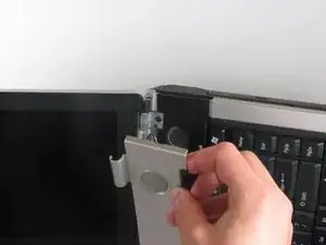 Откройте ноутбук, поднимая экран вверх и удерживая защёлку на месте.