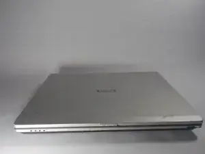 Поместите ноутбук на левый бок так, чтобы оптический привод был вверху, а экран открыт полностью.