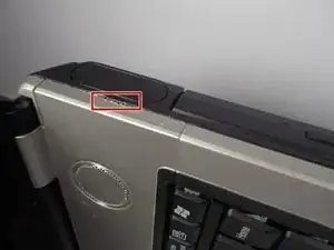 Найдите прямоугольный паз на боковой стороне ноутбука прямо над оптическим приводом.