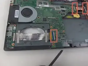 Отключите большие и маленькие ZIF-разъёмы, подключённые к материнской плате, перевернув светлую часть фиксатора.