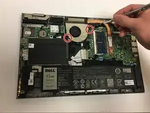 В этом руководстве приведены пошаговые инструкции по снятию вентилятора охлаждения с ноутбука Dell Inspiron 13-7359. Вам понадобится крестовая отвертка №0 и небольшая пластиковая лопатка.