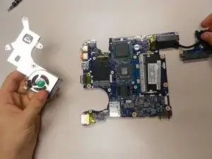 После извлечения материнской платы замена вентилятора охлаждения сводится к откручиванию нескольких винтов.