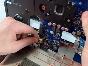 Снимите ленту с разъёма дисплея, подключённого к материнской плате.