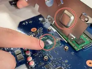 Снимите оставшиеся два винта Phillips #1 длиной 5 мм с материнской платы.