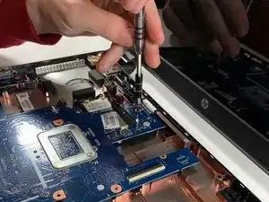 Снимите один винт Phillips #1 длиной 4 мм с модуля беспроводной сети.