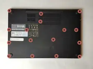 Используйте отвертку PH1, чтобы удалить 16 винтов по 6 мм из корпуса нижней части ноутбука.
