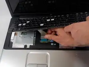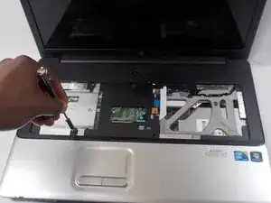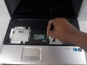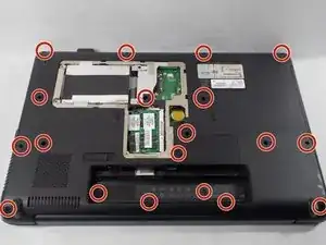 Переверните ноутбук и откройте его, так как клавиатура теперь отвинчена.