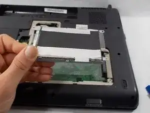 Используйте лопатку, чтобы сдвинуть жёсткий диск. Это разъединит его с разъёмом и позволит вынуть.