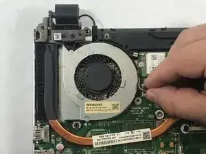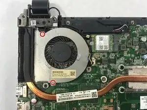 Удалите оба 3 мм винта, крепящих вентилятор, используя отвертку типа Phillips #1.