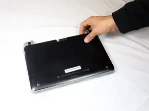 Осторожно поднимите заднюю панель ноутбука с места, где была батарея.