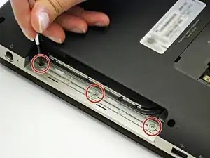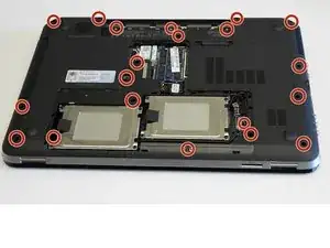 Осторожно выкрутите все двадцать винтов из внешнего корпуса ноутбука.