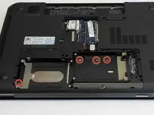 Снимите три винта на стыке слота оптического привода.