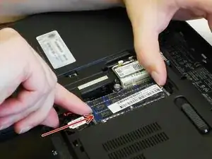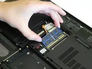 Извлеките оба модуля ОЗУ, аккуратно потянув их под углом 45 градусов.