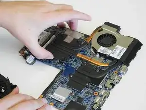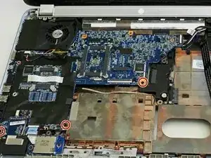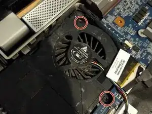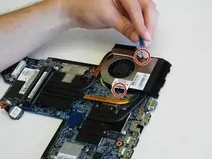 Удалите пять винтов, фиксирующих материнскую плату и вентилятор.