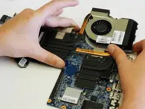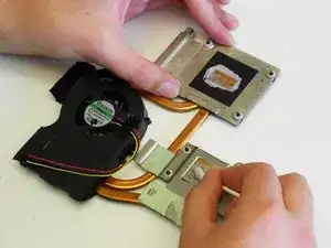 Вставьте новый вентилятор в посадочное место в узле вентилятора/радиатора. Сборку соберите обратно с помощью микровинтов.